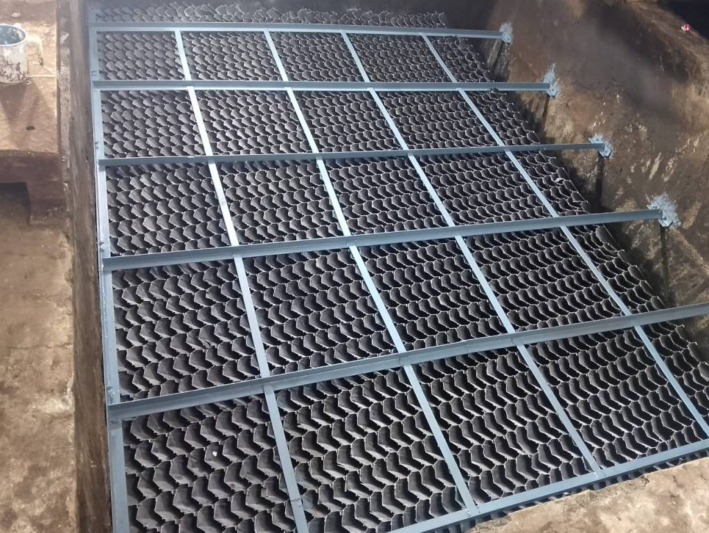 To address the black muddy water in the distribution of STP treated water from the overhead tanks, the damaged strainers were replaced across all 6 towers.