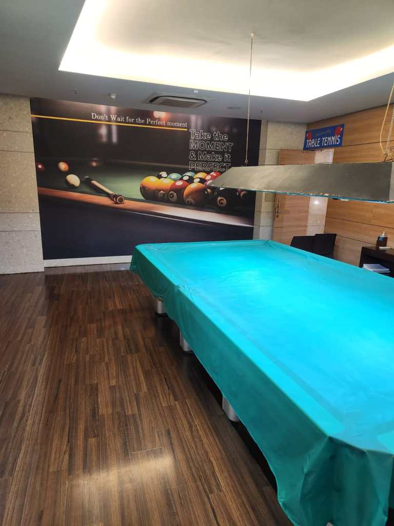 In the Billiards room, a background wallpaper around the sports of Billiards was installed on the Walls to make it look more beautiful.