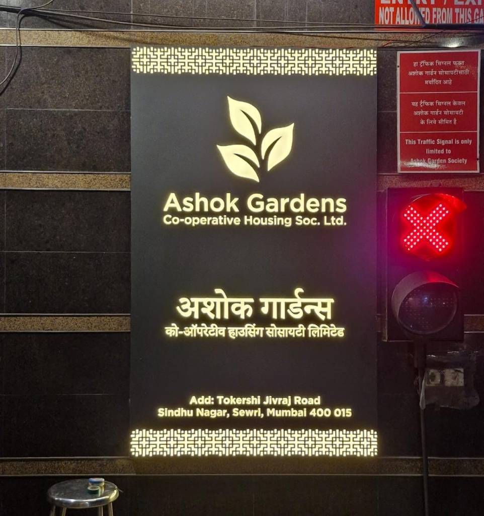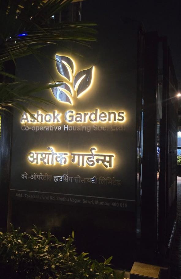 New illuminated signage displaying the ‘Ashok Gardens’ name has been installed at both the main and back gates to enhance the visibility and overall appearance of the society right at the entrance.