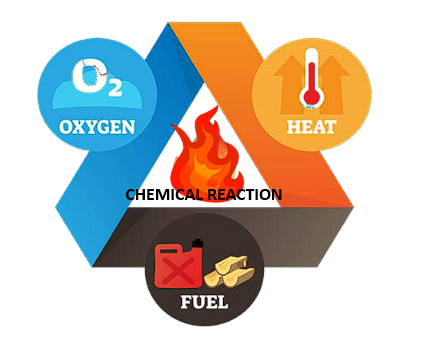 • These elements interact in a chemical reaction that leads to combustion.