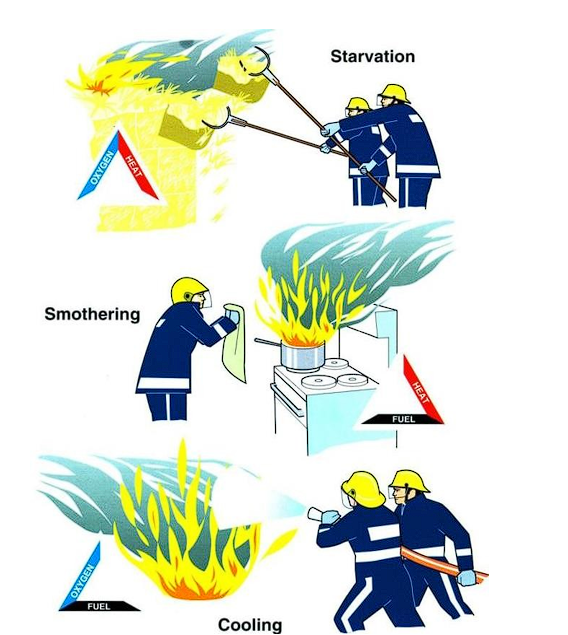 • Heat: Ignites the fuel in the presence of oxygen.