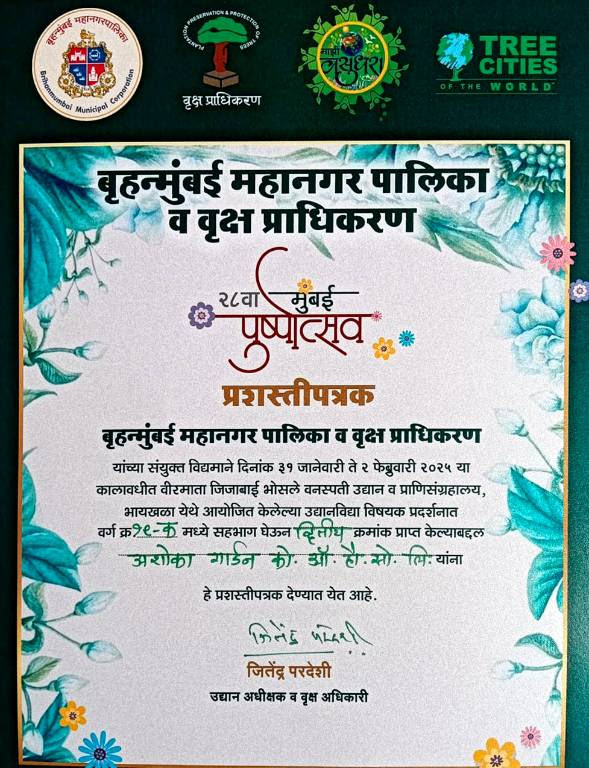 We are thrilled to announce that the Brihanmumbai Municipal Corporation (BMC) has recognized our Ashok Gardens for its exceptional efforts in maintaining our society’s Garden and implementing effective Waste Management practices.
