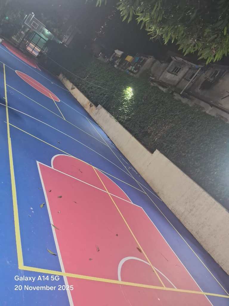 The basketball and pickleball court sustained surface and paint damage due to the fall of a large tree trunk. Additional cracks were observed in parts of the playing area. Complete surface repair, crack rectification, repainting & finishing have been carried out restoring the court to playable and safe condition.