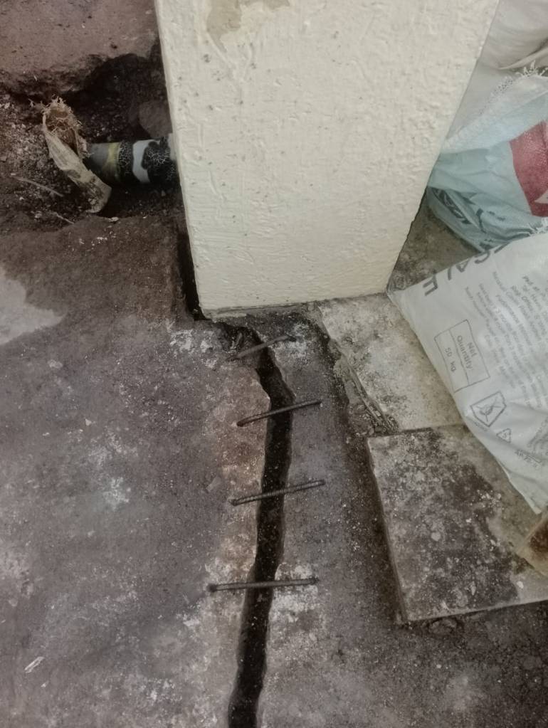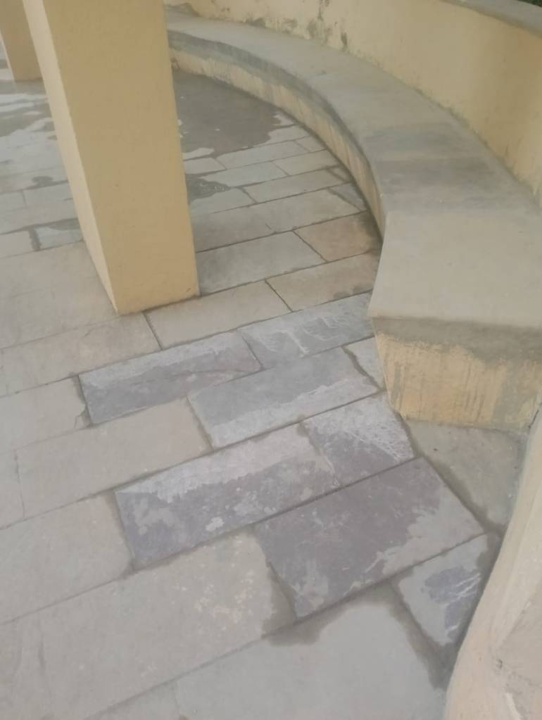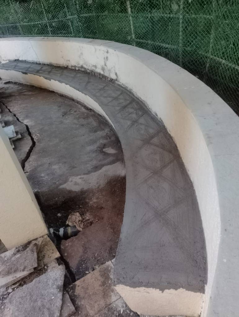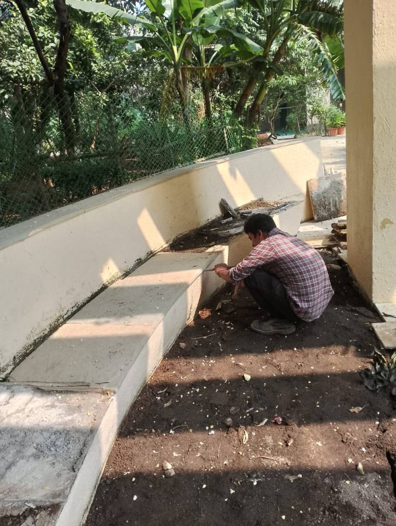 Soil erosion at the base of the meditation area had resulted in major floor cracks, tilting of the sitting platform & unsafe usage conditions. Crack repair, base strengthening & finishing works were successfully completed by the in-house civil team. The area has now been stabilized and restored for safe use.