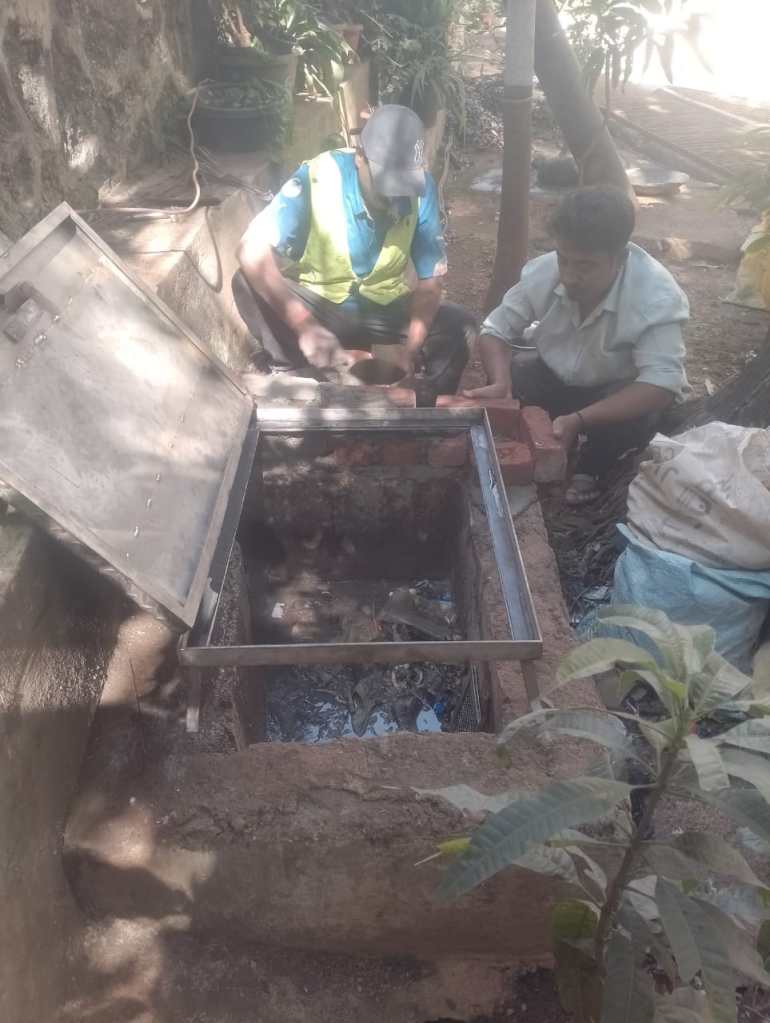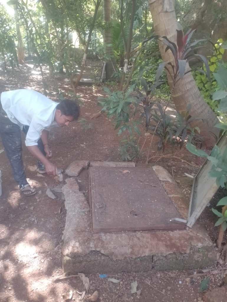 Drainage chambers located in the fruit garden area catering to nearby slum residences were found open or improperly sealed resulting in foul odours. Installation of new drainage chamber lids with proper sealing and tightening has been done by the in-house team support, aimed at improving hygiene and eliminating odour issues.